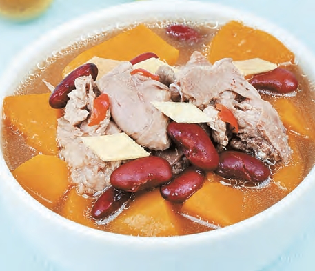 油锅置于火上烧热,将姜片炝香,下入高汤,调入盐,加入鹌鹑、南瓜、红腰豆煲至熟,淋入香油即可。