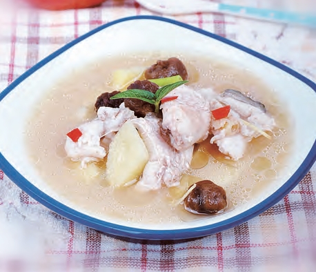 草鱼肉200克,百合10克,干无花果4颗,枸杞子10克,马蹄(罐装)5颗,盐、葱花各5克,香油5毫升
