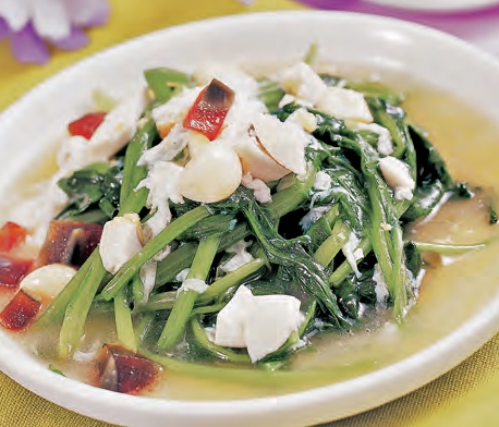 这道菜清新爽口,是备孕妈妈较佳的菜品选择之一。因为菠菜中含有丰富的维生素C、胡萝卜素及铁、钙、磷等矿物质,可帮助备孕妈妈预防缺铁性贫血,还可以增强备孕妈妈的体质;同时菠菜中含有丰富的叶酸,是孕前补充叶酸的佳品,有益于日后胎儿的健康发育。