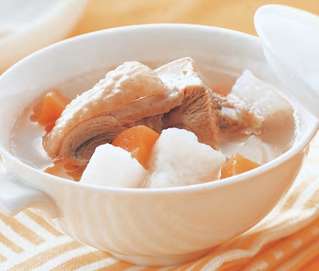 排骨中含维生素B 12 ,维生素B 12 能使注意力集中,增强记忆力,并能消除烦躁不安的情绪,有益于备孕妈妈调养身体。
