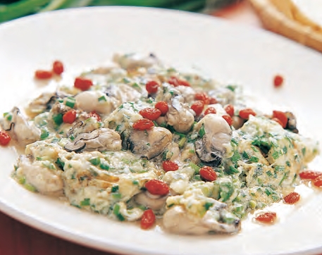这道菜味道鲜香,肉质酥嫩。韭菜古称“壮阳草”“起阳草”,顾名思义,即其有补肾壮阳的作用,医学上有“春夏养阳”之说;牡蛎的含锌量之高,可为食物之冠,牡蛎中还含有海洋生物特有的多种活性物质及多种氨基酸,有助孕的作用。这道菜有提高免疫力的功效。
