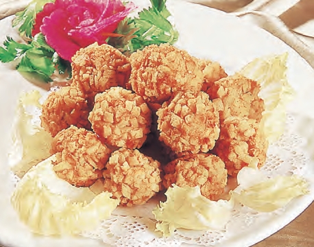 锅下油烧热,放入白萝卜丸子炸熟装盘即可。