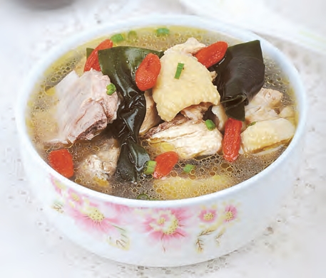 海带含有丰富的蛋白质、碘、钙、硒等营养素;猪肋排含有丰富的蛋白质、脂肪、磷酸钙、骨胶原等营养素;鸡肉含有丰富的蛋白质、B族维生素、钙、铁等营养素。用这些食材再配上枸杞子煲的汤,不仅营养丰富,还能增强体质,非常适合备孕妈妈食用。