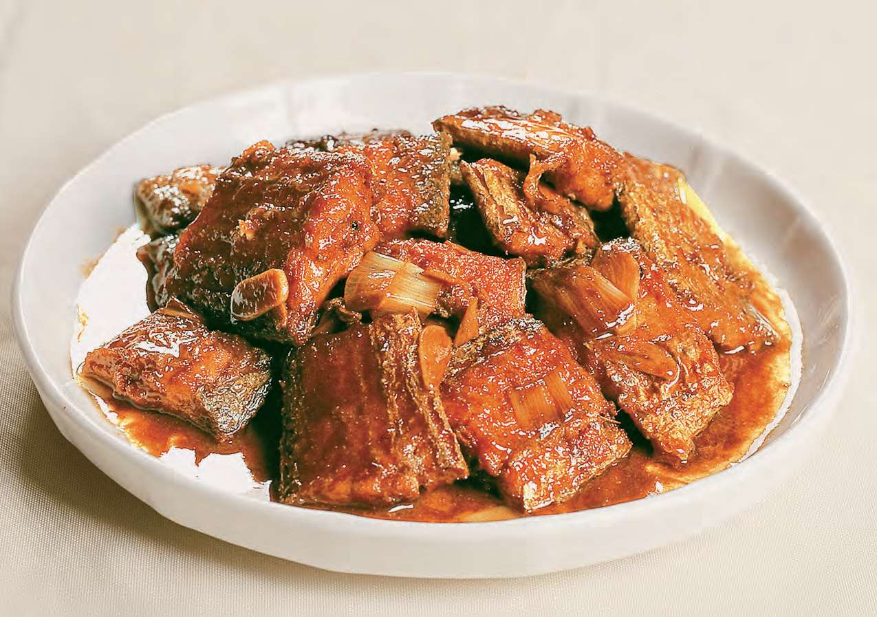 将带鱼加盐腌渍5分钟,再抹一些淀粉,下油锅中炸至金黄色。