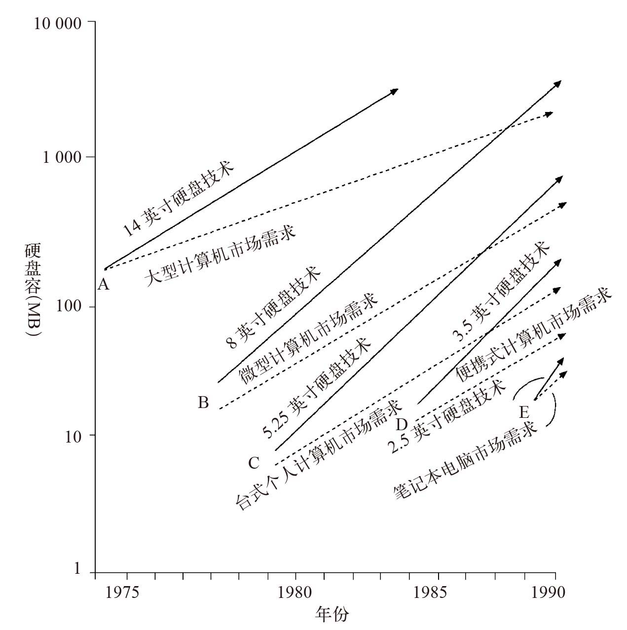 资料来源:克莱顿·克里斯坦森,《刚性磁盘驱动业:一段商业和技术的动荡史》,《商业史评论》67(4)(1993年冬):559。经授权后重新印刷