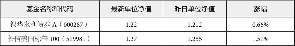 在日常生活中,人们多多少少都会接触到金融行业,对股票、债券、基金这些词有所耳闻。如下表中的银华永利债券A(000287)和长信美国标普100 (519981)就是两只非常典型的债券型基金和指数型基金。净值单位为元,下同。