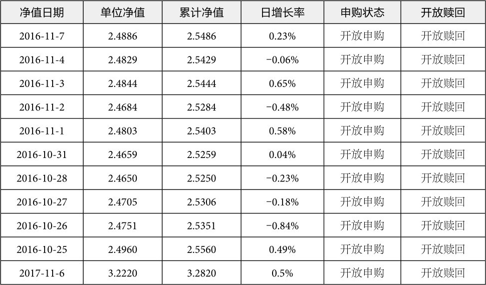 下表以汇丰晋信大盘股票基金A(540006)为例,2016年11月1日,该基金的单位净值为2.4803,这时如果投资者投资1万元,且假定其申购费率为0.15%即申购1万元需支付申购费15元,则其可以申购的份数为4025份,计算方法为. (10 000-15)÷2.4803≈4.025.72(份),此处取整。