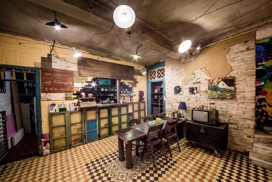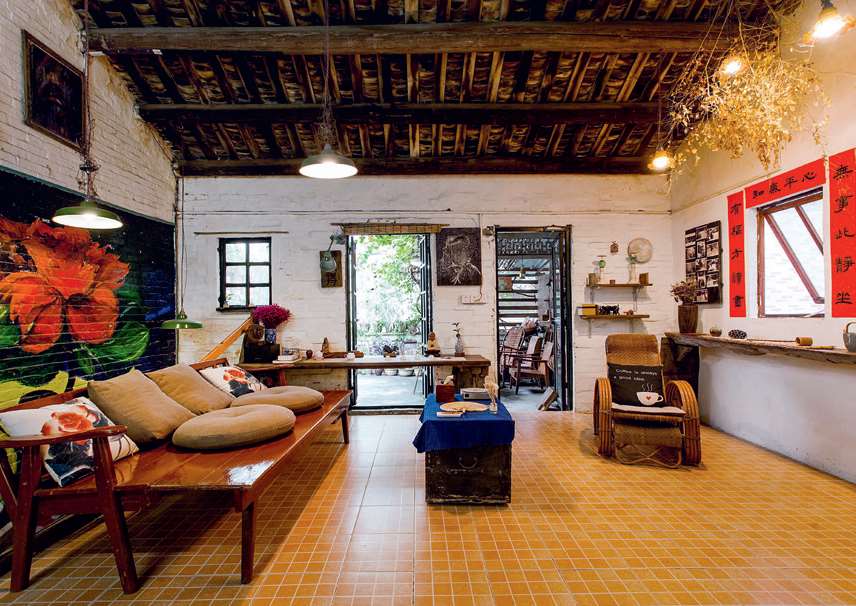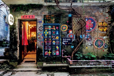 入口处,涂鸦艺术与老宅形成视觉冲击