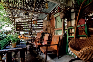 大厅摆放着店主从各地收来的老物件 |