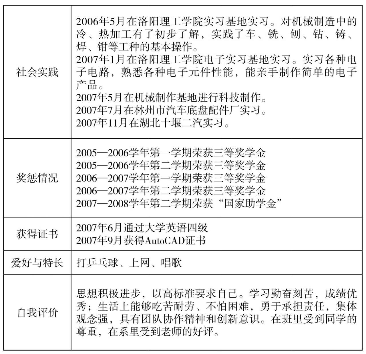 ④ 和写求职信一样,资料不要密密麻麻地堆在一起,项目与项目之间应有一定的空位相隔。
