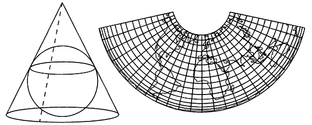 图1-4 Albers投影(引自:Conolly & Lake 2006,20页)