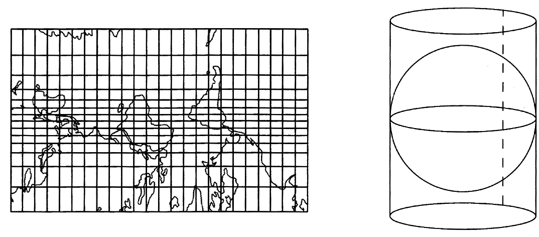 图1-6 等角圆柱投影(引自:Conolly & Lake 2006,21页)