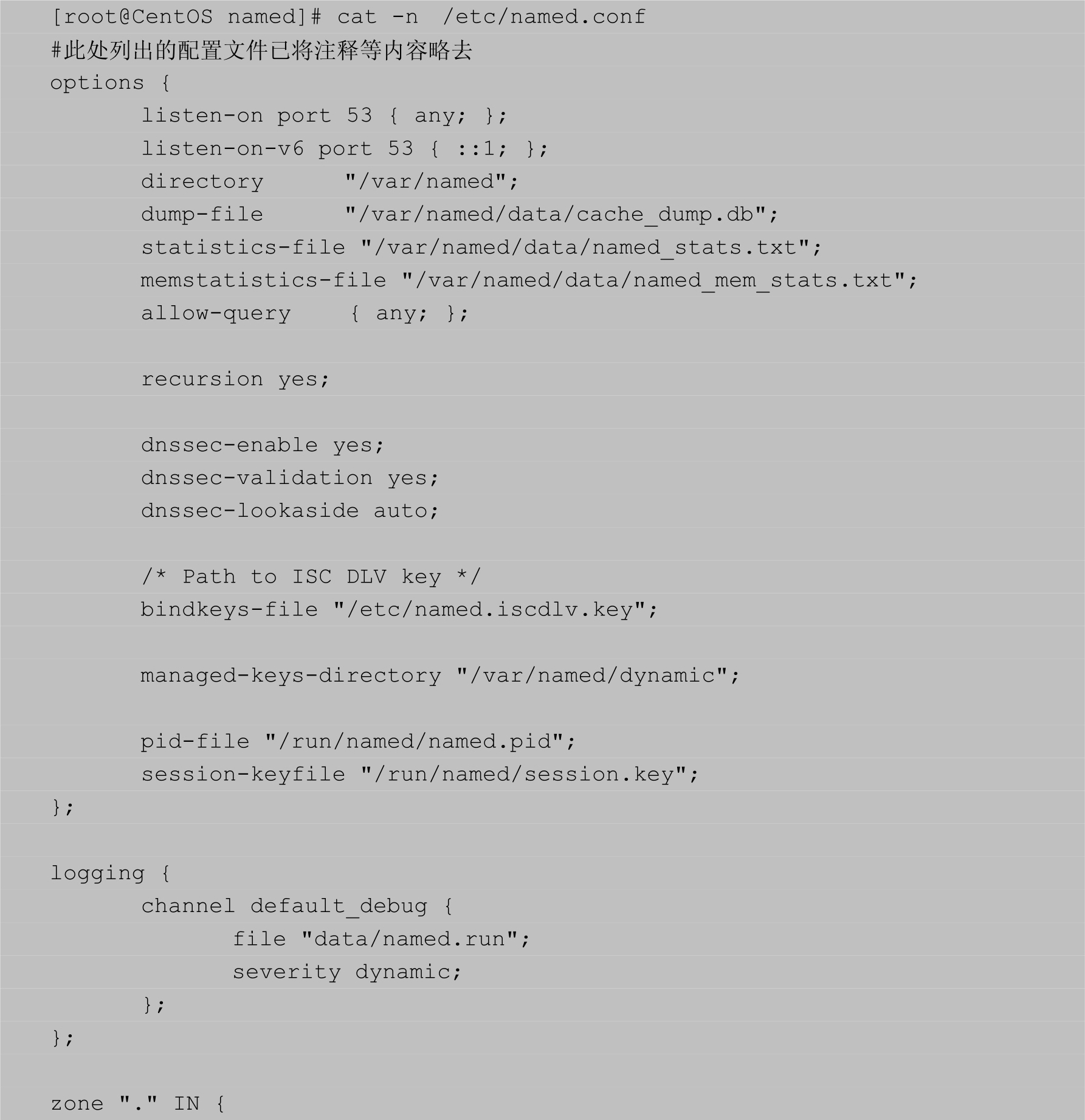 启动域名服务可以使用BIND软件提供的/etc/init.d/named脚本,如【示例3-36】所示。