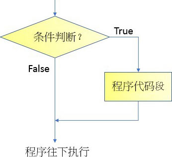 上述语句如果 条件判断 是 True ,则 执行 程序代码段 ;如果 条件判断 是 False ,则 不执行 程序代码段 。如果程序代码段只有一道指令,可将上述语法写成下列格式。
