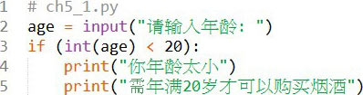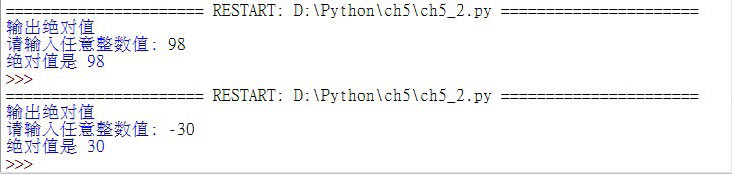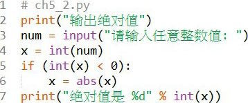 对于上述ch5_2.py而言,由于if语句只有一道指令,所以可以将第5行和第6行改写成下列语句。