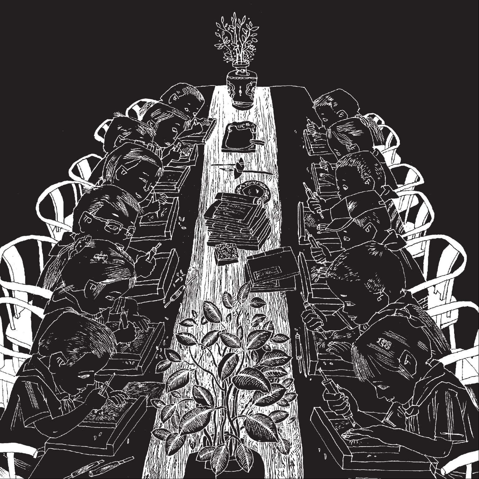 昨天,三(2)班在非遗教室上传统水印木刻课。同学们神情专注,手握拳刀,在各自的小刻板上细心雕刻。房间里出奇地静,只听得到拳刀和木板在低语。