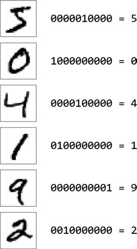 图像识别本质上是个分类问题,也就是给计算机一张图像,让其给出图像所属的类别。在计算机中,类别往往也是用数字表示的。例如一个二分类问题,类别的标签就是0和1,无论分的是猫和狗,还是苹果和香蕉,都可以把其中一种类别标记为0,另一种标记为1。如果类别不止两类,那么就要使用更多数字,例如一个十分类问题,类别的标签就是0~9这十个数字。但是直接使用数字作为标签会有个小问题,那就是数字之间有比较和算术关系,如2>1,5<7,3×3=9,而标签类别之间并没有这种比较关系,如苹果和香蕉是平级的,不存在苹果大于香蕉,或者梨是西瓜的2倍之类的关系。如果做分类问题时直接让计算机输出一个数字,数字自身的比较和算术关系会影响计算机的判断。所以通常我们会用一种叫独热编码(One Hot Encoding)的方法来代替数字。例如有10个类别,我们就会用10个0或1来表示任何一种类别,其中只有一个位置是1,其余位置都是0,哪一位是1就代表哪个类别,如上图所示。