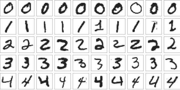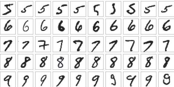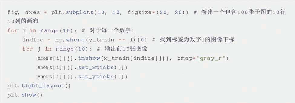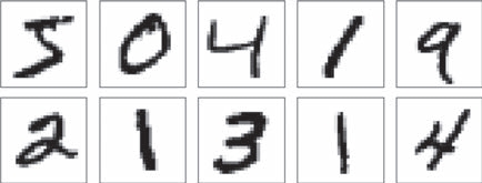 运行结果如下页图所示,可以看到MNIST数据集中包含了笔画轻重各异、书写风格不同的图像。数据集中的数据多样性很重要,只有计算机“见过”的数据越多,分类才越准确。直观上理解,若计算机“见过”的数字都是右撇子写的,这时给它一个由左撇子书写的数字,那么它大概率会识别错误;如果计算机曾经“见过”左撇子写的数字,那么它识别正确的可能性就会提升。