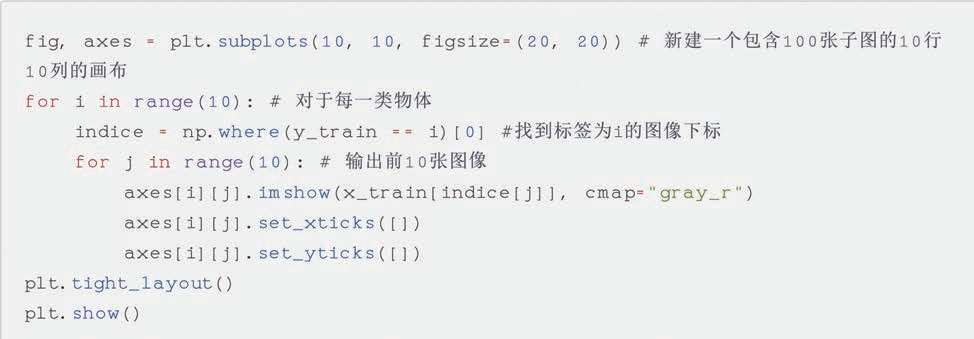 与前一小节中MNIST数据集相似,我们为每一类物体画出10张图像。