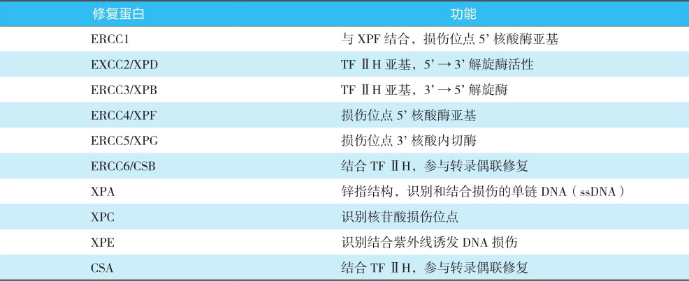 表1-1-1 核苷酸切除修复途径的修复蛋白