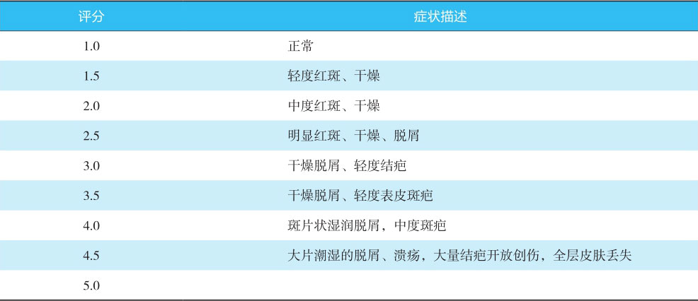 动物受照后,采用肉眼观察并根据放射性皮肤损伤评价标准进行评分。(表3-3-2)