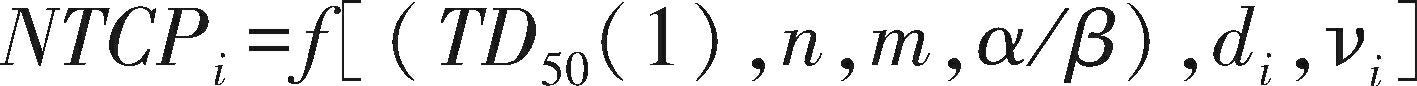 经过分次剂量因子α/β校正后,NTCP模型由 TD 50 ( 1 ), n 和 m 三个参数增加为含有α/β比值的四参数形式,即