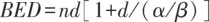 我们首先对BED(式6-3-5)作形式上的变换,假设 d 1 为常规分割的2.0Gy/次的分次剂量,则 n 1 d 1 是传统剂量分割模式下的总剂量,即生物总剂量D Bio ,对应的 d 2 就是非常规剂量分割方案下的分次剂量, n 2 d 2 就是物理剂量。此时,式6-3-5可以写成