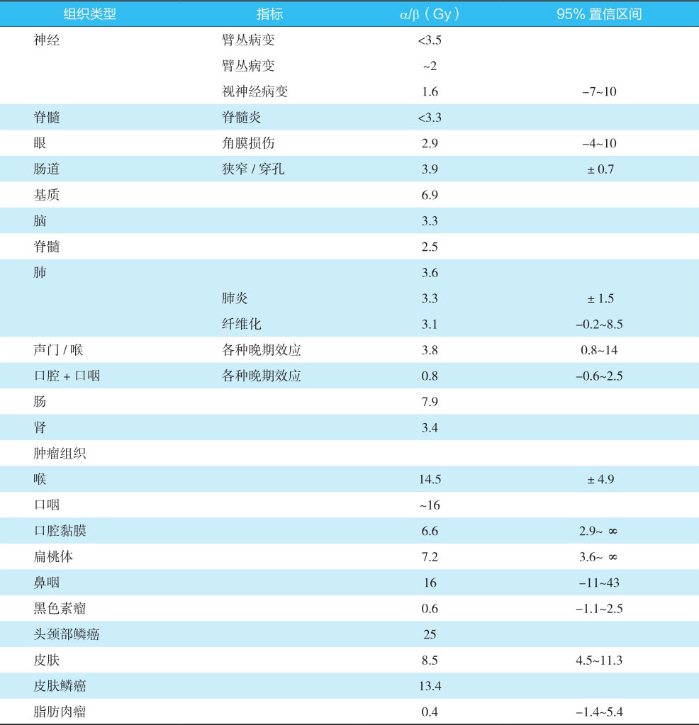 表6-3-1 常见正常组织和肿瘤组织BED计算参数