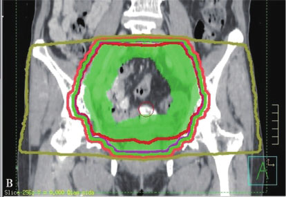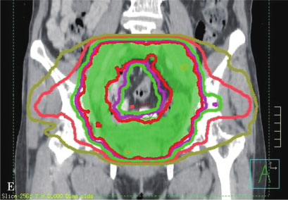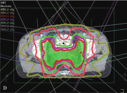 Zelefsky等报道使用IMRT患者的急性1级和2级直肠毒性和晚期2级直肠出血风险的发生率明显偏低,而尿毒性则与3DCRT相当。Mundt等报告了在妇科恶性肿瘤的全盆腔放疗中,IMRT治疗的耐受性较好,相对于3DCRT,其减少了急性的胃肠后遗症。Nutting等报告了前列腺癌患者使用IMRT照射盆腔淋巴结时(50Gy),其对照射35~50Gy的肠道部分的保护明显优于3DCRT。