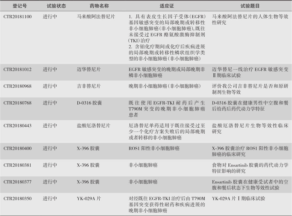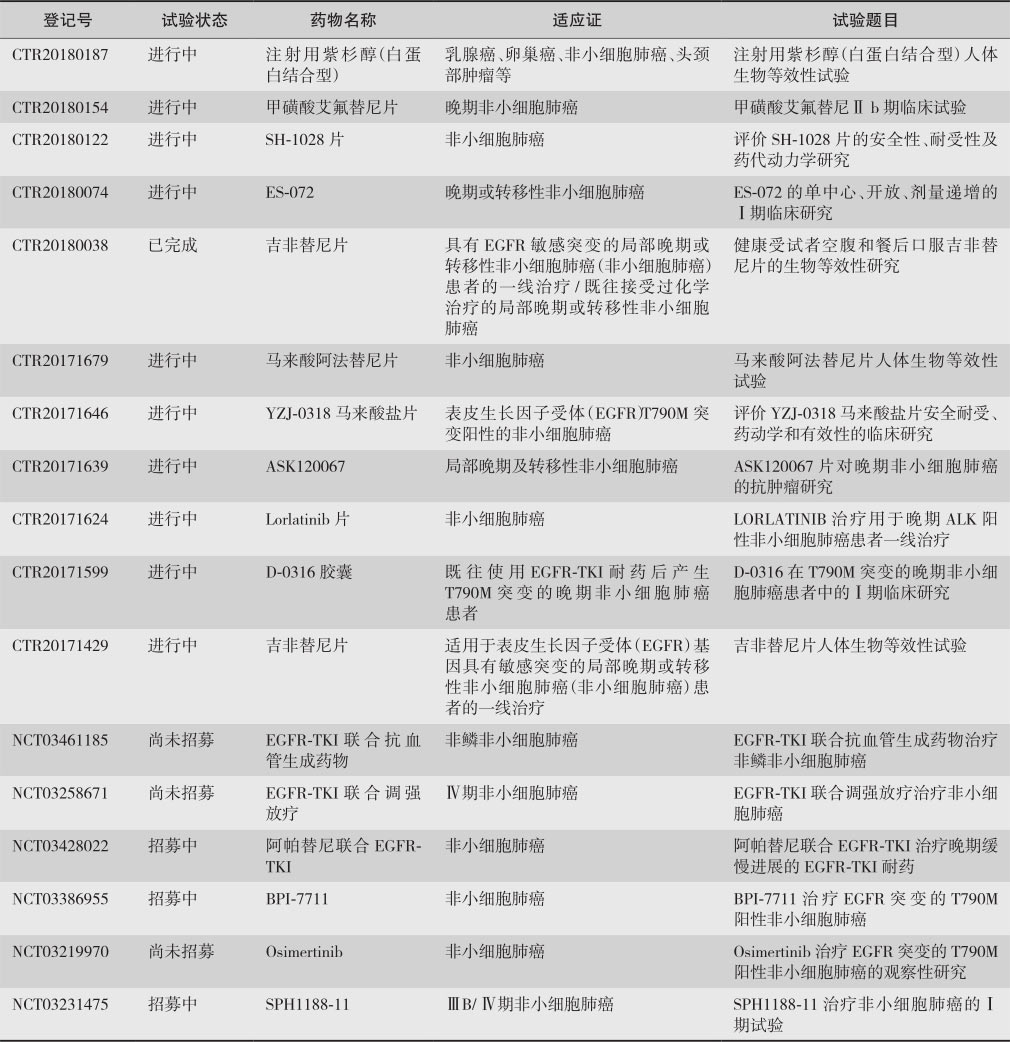 表2 CFDA和FDA登记的TKI相关临床试验(2017年6年31日—2018年7月1日)
