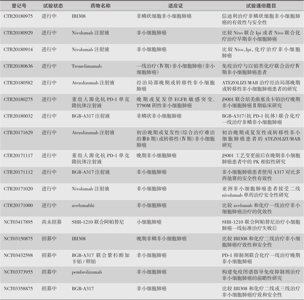 表4 CFDA/FDA登记的PD-1/PD-L1相关临床试验(2017年6月31日—2018年7月1日)