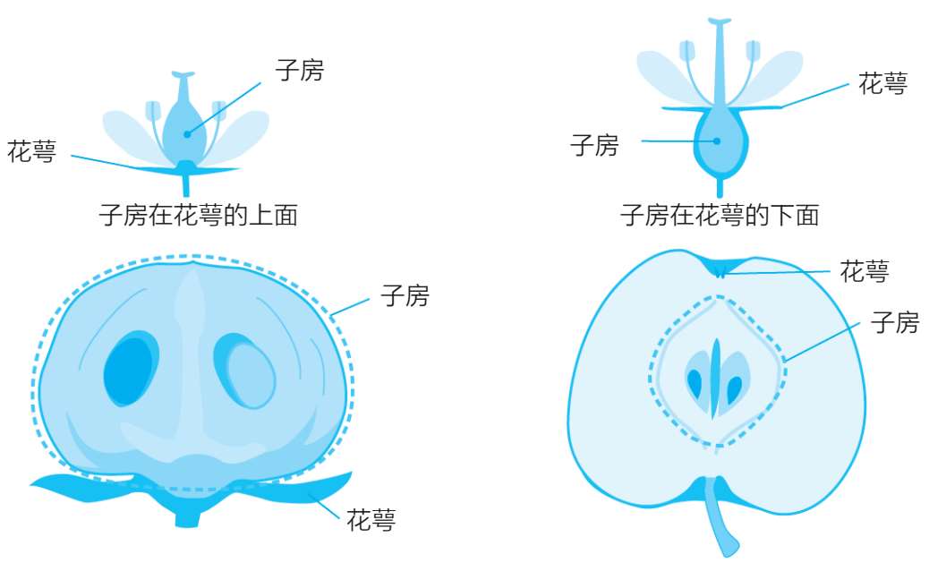 实际上,苹果的果肉并不是由肥大的子房形成的。苹果的果肉,是由花朵根部被叫作花托的部分包裹着子房而形成的。