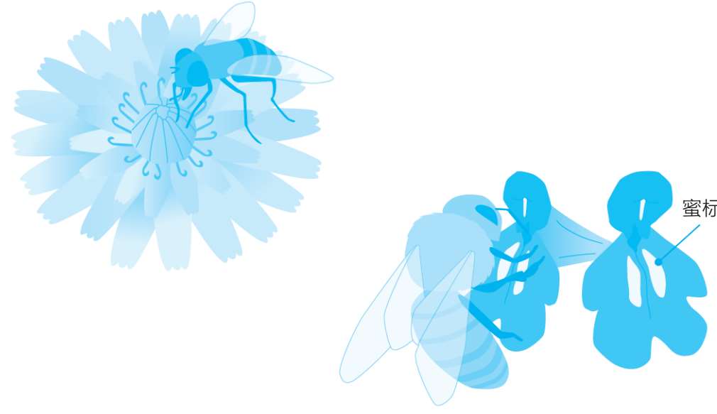 通过了重重考验,历经辛苦终于得到花蜜的蜜蜂,之后也会找可以按照这个方法吸食花蜜的花朵。因此,蜜蜂们都会选择飞向同种类的花朵。