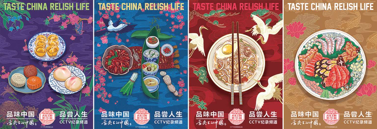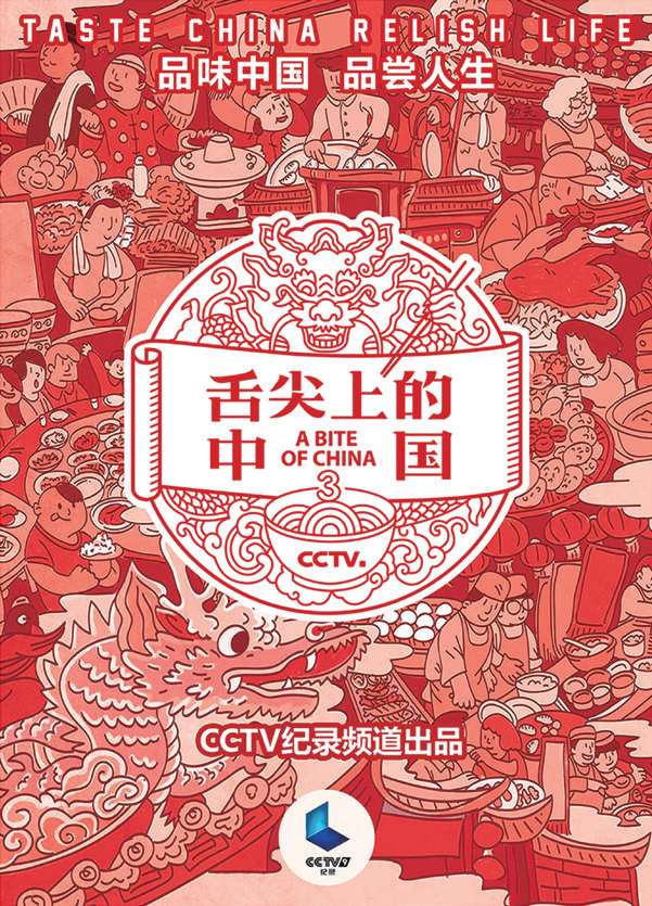 《舌尖上的中国》第3季是中央电视台出品的一部美食文化纪录片。该片主要讲述人与美食背后的温情故事,从历史演化过程中探究中国美食的迁徙与融合,深度讨论中国人与食物的关系。所以,第3季确定的主题关键词是 “食物、人物、文化”。较之《舌尖上的中国》第1季和第2季所运用的海报宣传,第3季通过设计标志来强化其作为中国优秀纪录片的品牌形象,寓意第3季以美食故事作为载体,展示中华民族的百味人生,诠释天人合一的东方哲学。