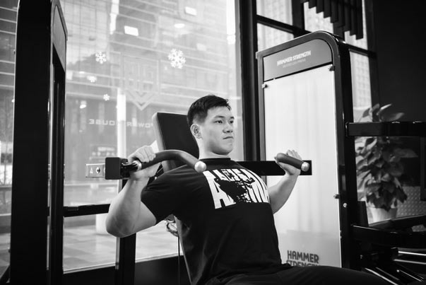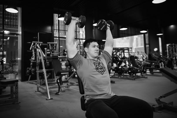 三角肌训练有两个基本动作,一个是推举,一个是平举。