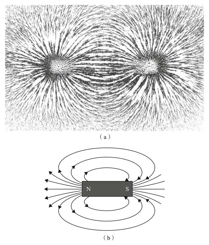 当时,种种实验证据表明,电现象与磁现象之间有着千丝万缕的联系。因此,从1855年开始,麦克斯韦在长达10年的时间里发表了一系列论文,将这两种不同但密切关联的现象分别用 电场 和 磁场 加以描述。我们可以用“力线”来形象地描绘这类场,它们通常从正电荷出发通往负电荷,或是从北极出发通往南极(见图1)。这类场绝不只是丰富的想象力的产物:当你试图把两块磁铁的北极对在一起时,你就能切实 感受到 它的存在。