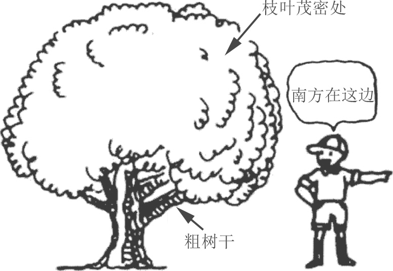 图1.4 利用青苔喜欢生长于潮湿地方的特性,找出背阳处,进而分辨出向阳的南方