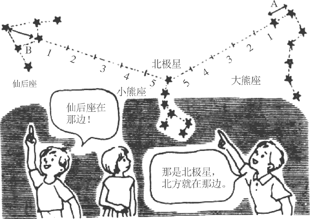 如果夜空中出现美丽的星斗,我们可由北方三星座找到北极星。