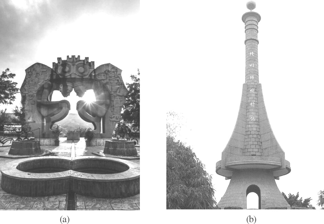 图1.26 云南墨江的“北回归线公园”(a)和广州从化的“北回归线标志塔”(b)