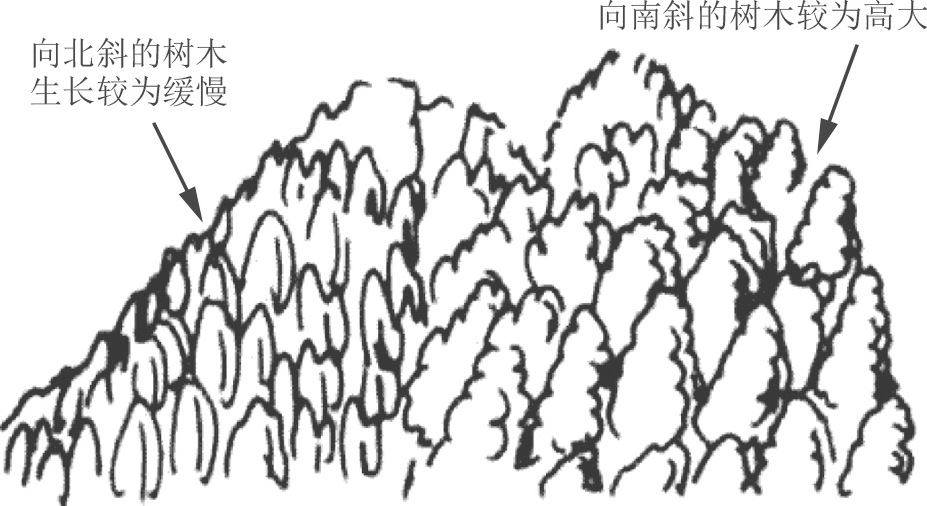 (1)以山上树木生长的茂密情形判断(图1.5)