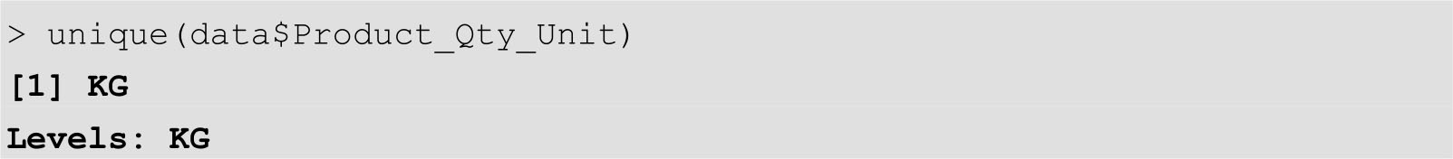 Product_Qty_Unit(即产品数量单位)表示产品(即生产的洗涤剂)数量的测量单位。下面来看看采用了哪些不同的单位来测量产品的数量: