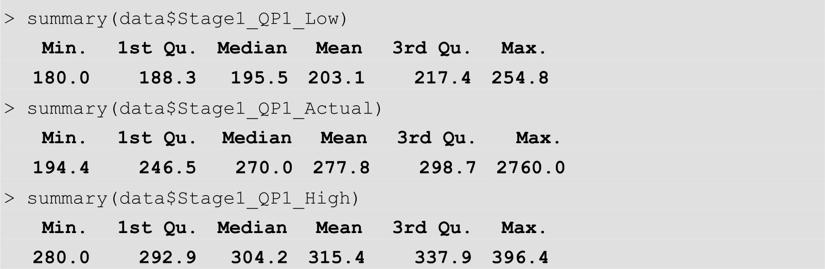 ① Min.(最小值)、1st Qu.(第一四分位数)、Median(中位数)、Mean(均值)、3rd Qu. (第三四分位数)以及Max.(最大值)。——译者注