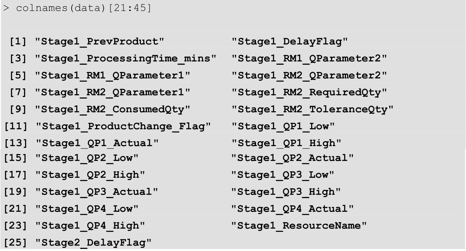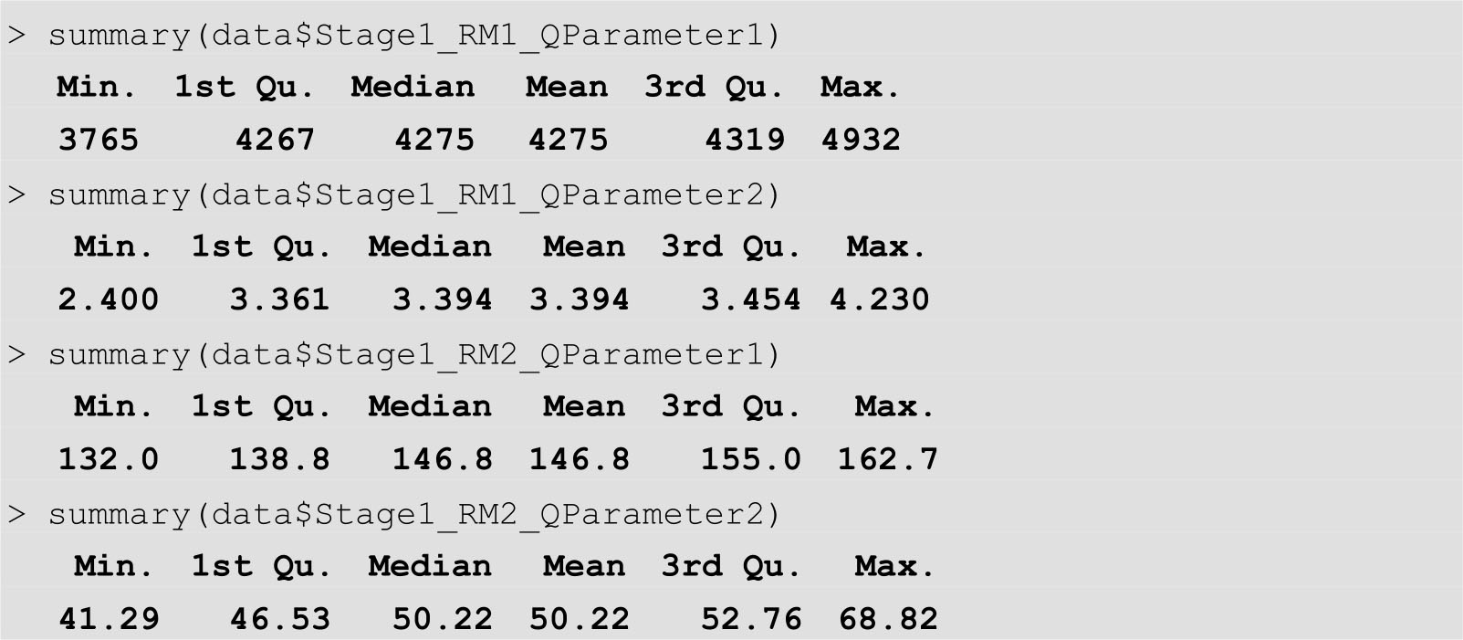Stage1_RM1_QParameter1(即阶段1原料1质量参数1)提供第一阶段中采用的第一种原料的第一个质量参数的一些值。