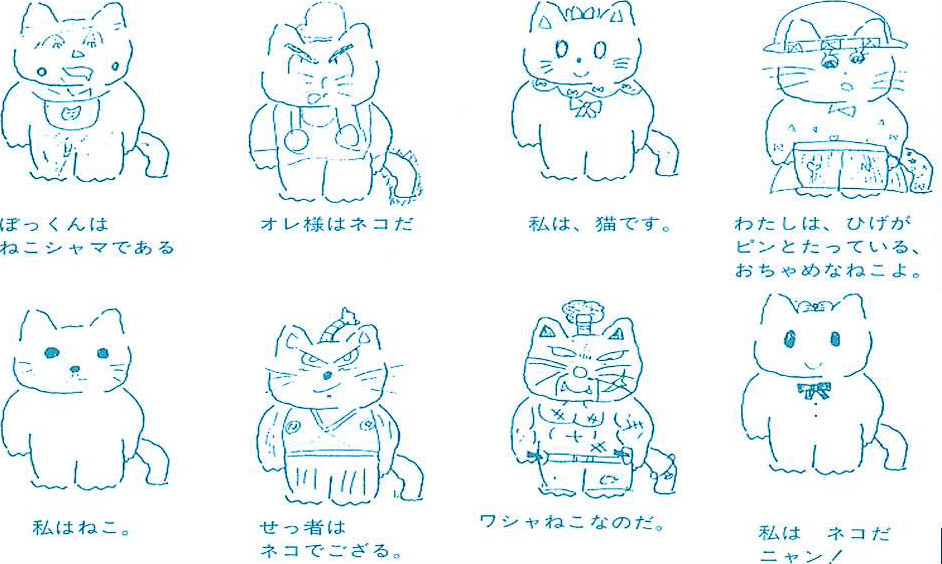 場面や、話し手と聞き手の関係によって表現は変わります。次のイラストの猫がどんな場面でどんな口調で言っているか、想像してみましょう。