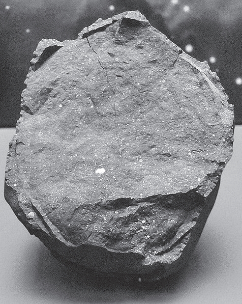 1969年9月28日,一颗陨石坠落于澳大利亚的墨其森(Murchison),因而被命名为墨其森陨石(Murchison Meteorite)(图1-4)。这颗陨石总重超过100公斤,上面含有15种氨基酸,包括组成蛋白质的甘氨酸、丙氨酸、谷氨酸,以及含有两个氨基的氨基酸(我们身体里的天冬酰胺、谷氨酰胺、赖氨酸也是含有两个氨基的氨基酸)。在从陨石中取样时最容易被污染的丝氨酸和苏氨酸反而没有被测出,说明这15种氨基酸的确来自太空。而且这些氨基酸是“消旋”(没有旋光性)的,即两种镜面对称的分子都有,说明它们是非生物来源的,很可能是碳、氢、氧、氮等元素的化合物被高能射线照射,发生化学反应而形成的。除氨基酸以外,墨其森陨石还含有嘌呤和嘧啶,即地球上生物的遗传物质脱氧核糖核酸(DNA)和核糖核酸(RNA)的组成部分。该陨石还含有大量“芳香化合物”(由碳原子和氢原子组成的环状化合物)、直链型碳氢化合物、醇类化合物、羧酸(含有“羧基”的碳氢化合物)以及富勒烯(Fullerens,完全由碳原子彼此相连构成的中空的球体、管状物或平面)。