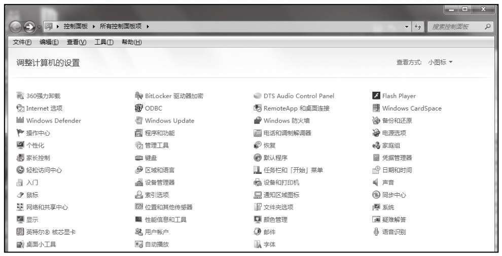 (1)选择【开始】→【控制面板】选项,出现下图所示的对话框。