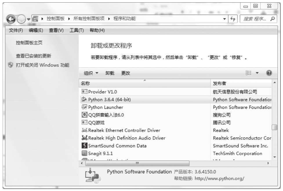 如果不想在自己的计算机上继续使用Python,就可以将该软件卸载,其卸载方法如下。