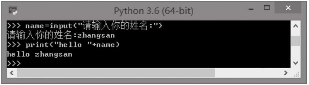上面代码首先出现提示信息"请输入你的姓名:",然后等待用户输入,输入的内容会存放到name变量中,在print函数中显示结果,如下图所示。
