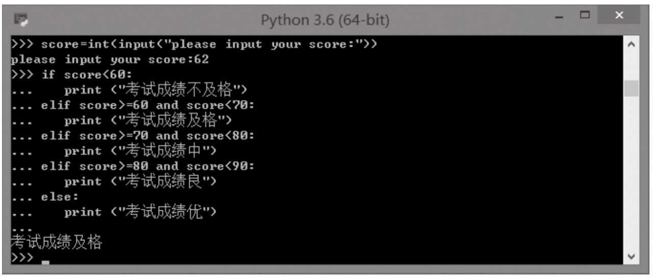 上面代码首先使用输入函数提示用户输入考试成绩,其次执行下面的条件语句,根据条件进行判断。