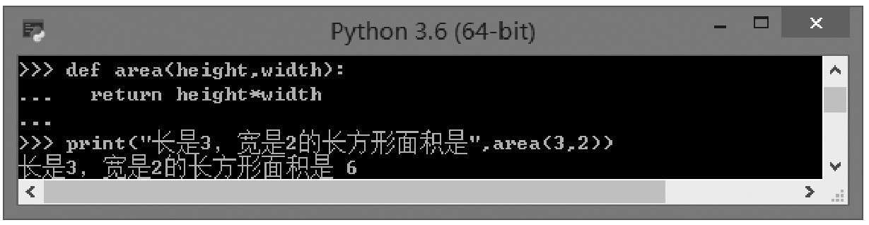 上面的函数使用return把计算结果返回,调用这个函数时需要提供长和宽。程序运行结果如下图所示。